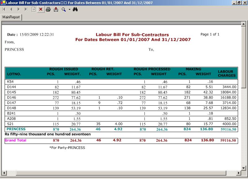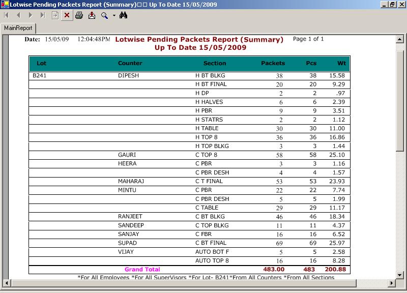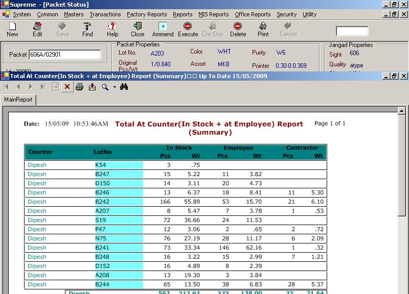- Value Analysis reports � Workerwise, Lotwise, Datewise